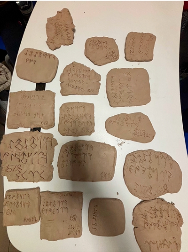 6. sınıf öğrencilerimizle Sosyal Bilgiler dersinde tarihin izini sürdük! Kil tabletler üzerine Göktürk alfabesiyle yazılar yazdık ?✍️ Geçmişi sınıfımıza taşıdık! ?