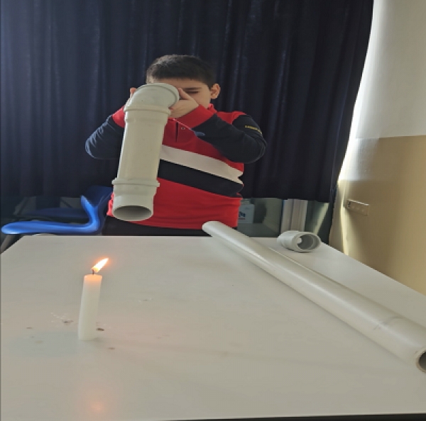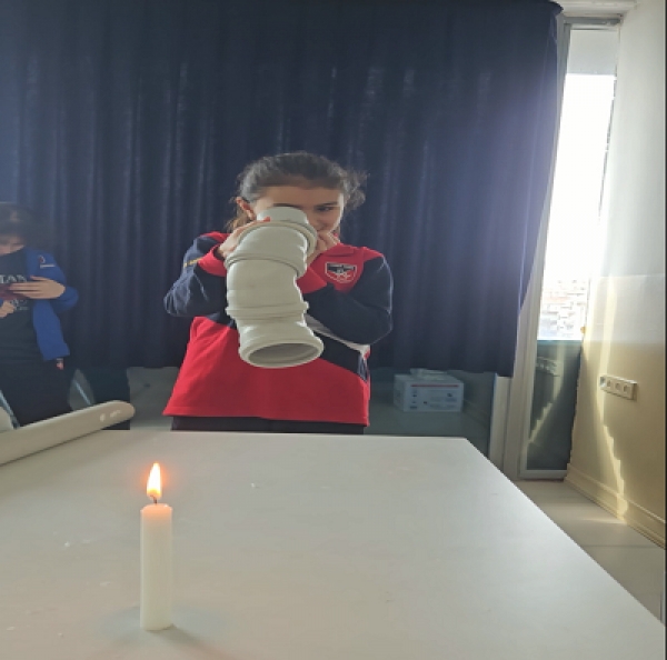 5.sınıf öğrencilerimiz Fen Bilimleri dersinde ışığın doğrusal yolla yayıldığını deney yaparak pekiştirdiler.
