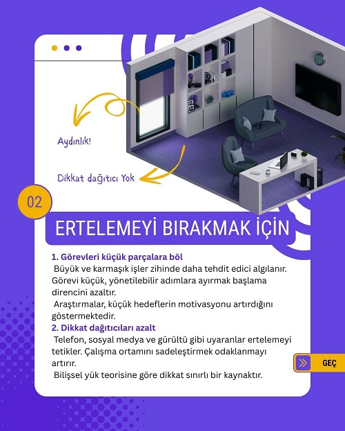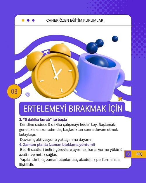 Ertelemek mi, harekete geçmek mi? ? LGS sürecinde en büyük engellerden biri çoğu zaman derslerin zorluğu değil, “sonra yaparım” düşüncesidir. Erteleme, kısa vadede rahatlatıyor gibi görünse de uzun vadede stres, kaygı ve zaman baskısını artırır. B