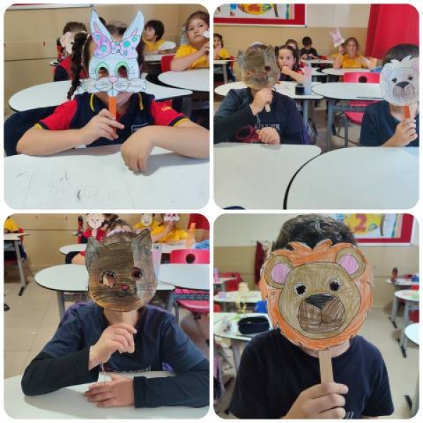 2/B sınıfı öğrencileriyle" 4 Ekim Hayvanları Koruma Günü" kapsamında sunumumuzu izledik ve hayvan maskelerimizi yaptık.